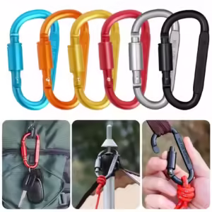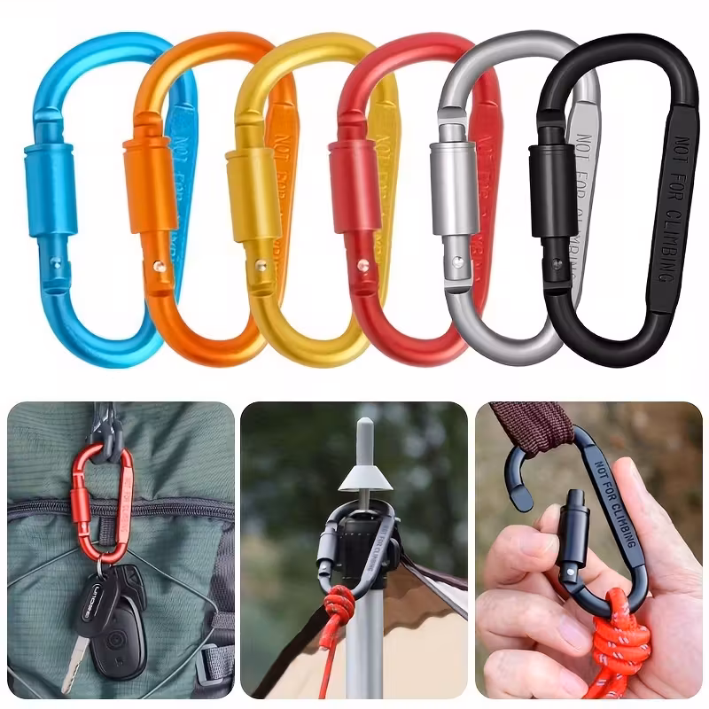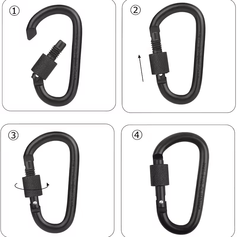 Mosquetones en forma de D, aleación de aluminio de alta calidad para exteriores – Cierre rápido con tornillo y giratoria Material resistentemente anticorrosivo.